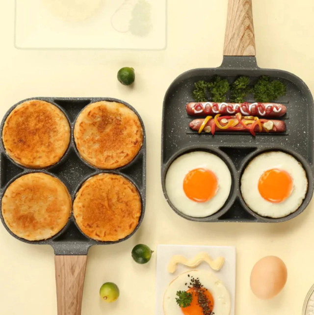 Seja a de 3 ou de 4 cavidades, a MultiPanChef foi criada para facilitar sua rotina na cozinha. A versão com 3 divisões é perfeita para porções menores ou pratos mais encorpados. Já a de 4 cavidades é ideal para preparar tudo de uma só vez — ovos, panquecas, mini sanduíches e mais.